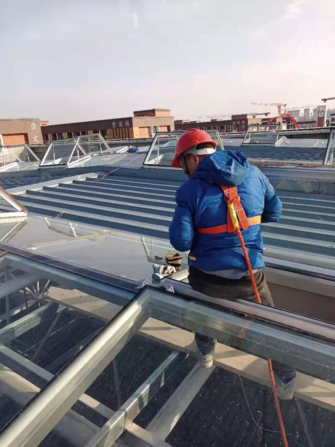 屋面電動排煙天窗,安裝位置高,可操作平臺面積小,鑫友專業(yè)安裝團(tuán)隊?wèi){借過硬的安裝本領(lǐng),豐富的安裝經(jīng)驗,客服困難,保質(zhì)保量得完成了安裝任務(wù),并按期完成驗收,交付使用。