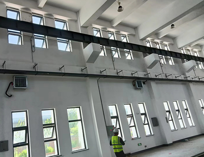 我公司承接蕪湖熙寧建設(shè)工程有限公司天津?qū)氎孳壍儡噹臁⒕C合樓、宿舍樓的排煙窗工程已經(jīng)于昨日完工并經(jīng)甲方初步調(diào)試通過,選用的是曲臂式手動和電動兩種開啟裝置。電動開窗機是一種新型自動開/關(guān)窗戶的設(shè)備,可實現(xiàn)窗戶開啟/關(guān)閉的自動化控制。