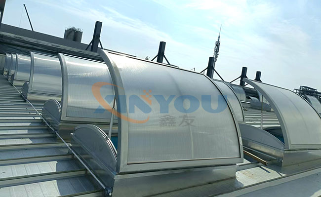 圓拱形的設(shè)計(jì),外觀優(yōu)美、通風(fēng)排煙兼顧自然采光,開(kāi)啟角度一般為30度到45度***開(kāi)啟角度為90°。