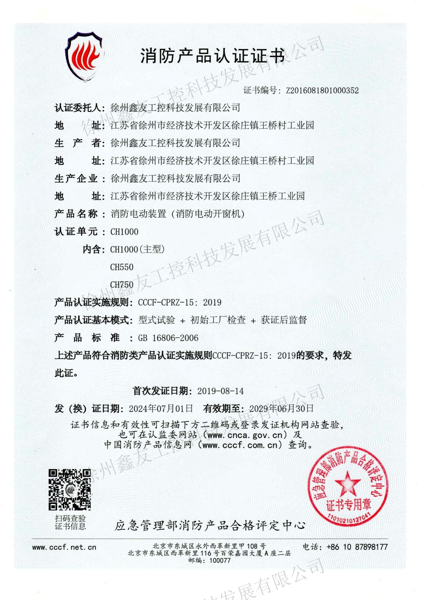 消防產(chǎn)品認(rèn)證CH300(2019.8.14-2024.8.13)