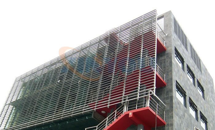 梭型百葉窗百葉采用中空結(jié)構(gòu),葉片呈梭形,雙弧面,具有強(qiáng)度高、跨度大的特點(diǎn),通過與玻璃幕墻的配合,可實(shí)現(xiàn)遮陽、采光、裝飾建筑物的效果。梭型百葉窗通過電機(jī)帶動葉片的旋轉(zhuǎn),從而改變室內(nèi)采光效果,達(dá)到遮陽節(jié)能的目的。