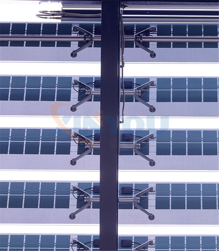 光伏百葉,能夠有效的將太陽能轉化為電能、動能,同時百葉滿足日常的采光、遮陽這樣功能。光伏百葉環(huán)境控制單元可以預置對風、雨、光、溫、煙等感應參數,使之通過外置感應器,對超限值作出及時回應進而控制百葉動作,完全實現了綠色環(huán)保節(jié)能的建筑理念。