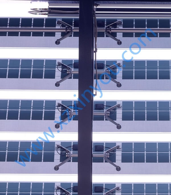 光伏百葉,能夠有效的將太陽能轉(zhuǎn)化為電能、動能,同時百葉滿足日常的采光、遮陽這樣功能。光伏百葉環(huán)境控制單元可以預置對風、雨、光、溫、煙等感應參數(shù),使之通過外置感應器,對超限值作出及時回應進而控制百葉動作,完全實現(xiàn)了綠色環(huán)保節(jié)能的建筑理念。