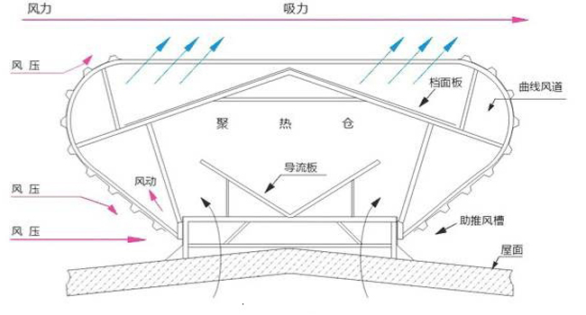 風壓作用:當風從廠房頂部吹過,迎風面產(chǎn)生氣壓區(qū),背風面產(chǎn)生負壓區(qū),氣壓的相互作用,使廠房達到通風換氣的目的。
