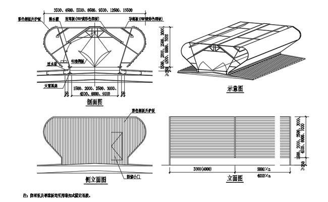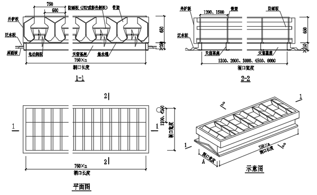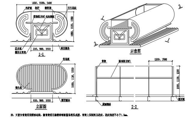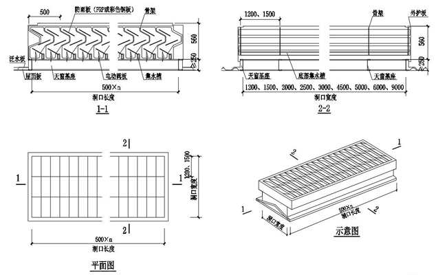 3. 通風天窗側(cè)面外護板為彩鋼壓型板,泛水包邊板用彩鋼板折彎而成。