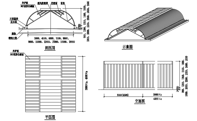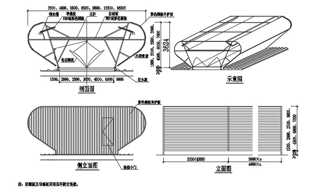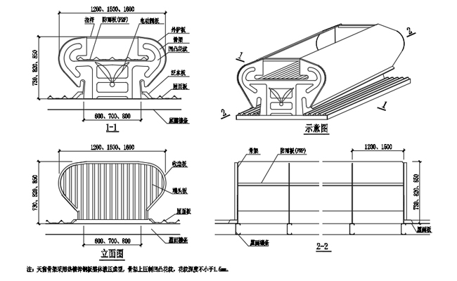 2. 主骨架和屋脊通風天窗基座采用焊接或者螺栓連接,與屋面形成一個整體,具有較好的結(jié)構(gòu)安全性能。